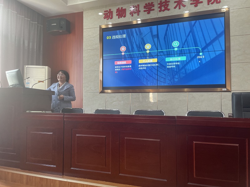 院党委书记曾建英传达了2023年全省教育系统全面从严治党工作视频会议的相关精神并做了总结讲话。她强调,规范科研经费使用、规范教师职业行为是党风廉政建设、师德师风建设的重要内容。风清则气正,气正则学进。希望每位老师都做到严格自律,加强科学道德修养,坚守科研诚信,遵守教师职业行为规范,共同营造风清气正的科研、教学环境,激发源源不断的创新活力、创新成果,做新时代高校好教师。