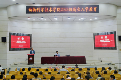 会议伊始,动科学院院长贺喜向23级新生介绍这位“杰出校友”,侯德兴是现任日本国立鹿儿岛大学教授,博士生导师。侯教授获日本国立鹿儿岛大学农学博士学位和日本国立东京大学药学博士学位,曾在日本理化学研究所从事博士后研究,先后担任日本鹿儿岛大学教务处处长、食品生命科学系主任、日本农林水产省重点项目首席科学家等职务。