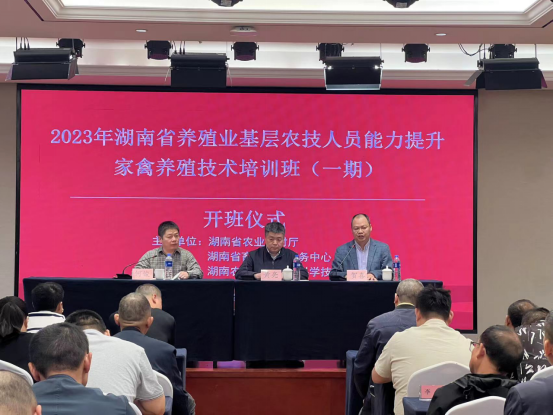 10月31日,由湖南省农业农村厅和湖南省畜牧水产事务中心主办、304永利集团官网入口和湖南家禽产业技术体系承办,2023年湖南省养殖业基层农技人员能力提升——家禽养殖技术培训班开班。省畜牧水产事务中心科技推广部部长黄亮、304永利集团官网入口院长贺喜、副院长何俊出席开班仪式。