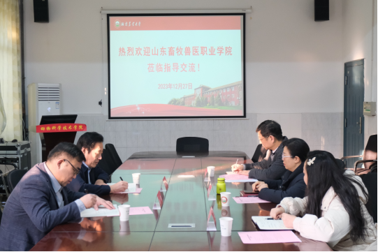 12月27日,山东畜牧兽医职业学院党委书记郑立森一行2人来永利官网调研交流,学院党委书记曾建英、党委副书记肖露、副院长范志勇等参加座谈会,会议由曾建英主持。