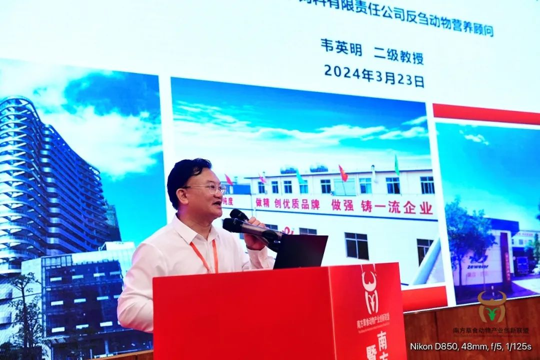 广西大学二级教授、广西牛羊产业创新团队首席专家、南方牛羊产业体系联盟轮值主席韦英明教授分享《秸秆高值饲料化利用的研究和推广》专题报告
