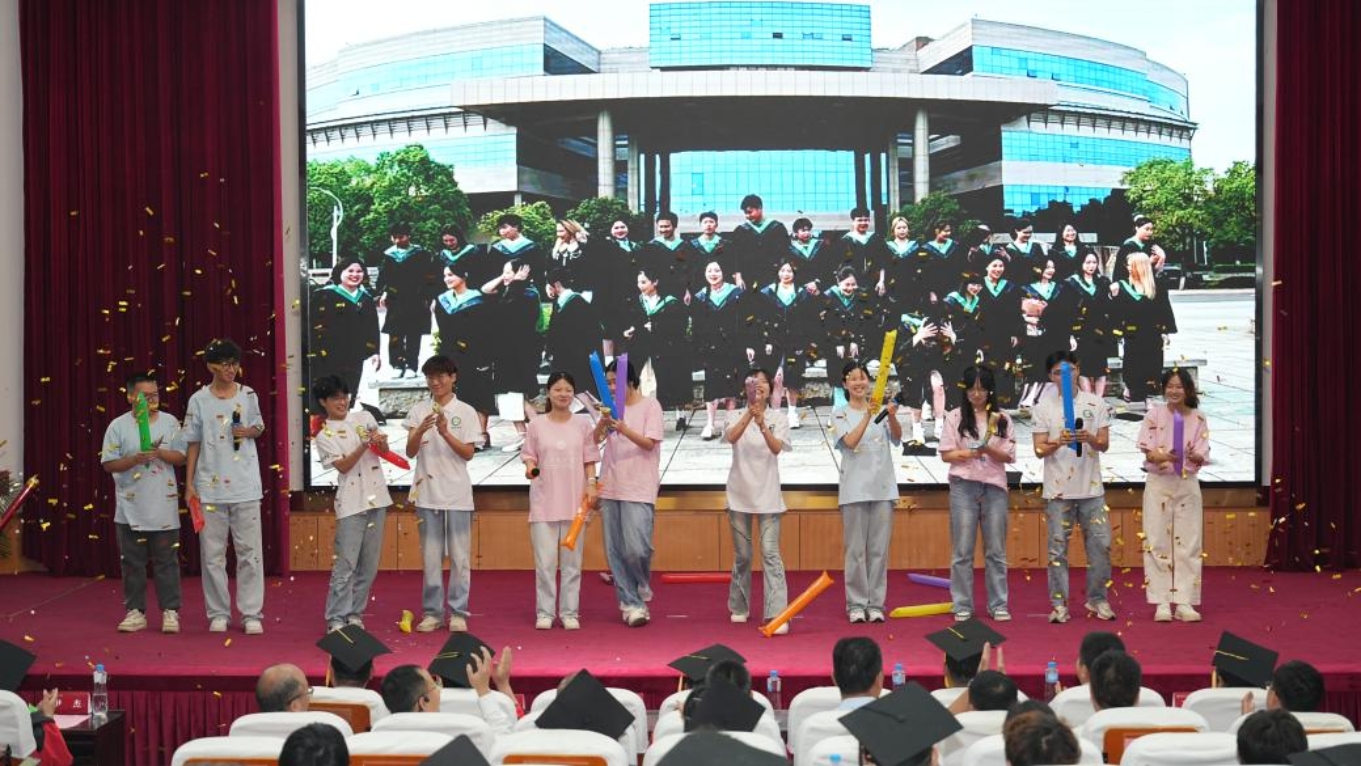 通过播放《青春不散,未来可期》《纸短情长,佳音渐浓》《赠尔纪念,未来相伴》三段视频,展示往昔照片,聆听老师寄语,让毕业生们重温了四年成长历程。