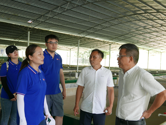 据资兴水产良种场刘志辉厂长的介绍,资兴市淡水资源丰富、水质优良,渔业发展资源优势明显。随着东江湖及其他天然水域全面禁捕退捕,东江湖渔业产业转型升级面临一些困难和挑战。万口网箱退水上岸,在水产良种场的牵头下,资兴市积极推动渔业转型升级,大力发展内陆养殖渔业,一大批内陆养殖渔业项目先后落户投产。对此,博士团的专家们向当地养殖户们提出了利用循环水、生物絮团和在养殖池中培养益生菌等新型养殖技术的建议,以此来减少类似于流水养殖等传统养殖模式的高耗水和病菌交叉感染等问题,在得到高产的同时,实现养殖的绿色化生态化。
