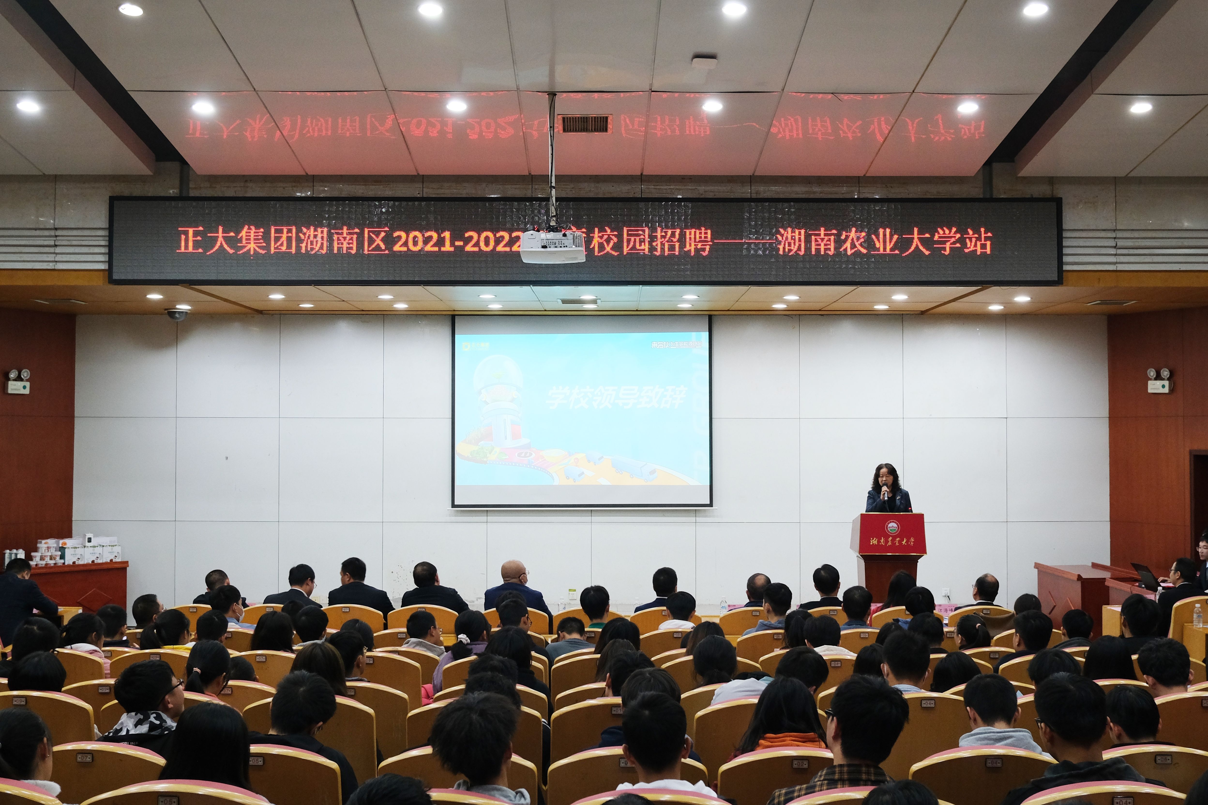 正大集团湖南地区资深总裁邓红成带来的《热爱是最好的老师》主题分享,结合自身经历,为大家从多方面介绍了正大集团企业价值观和政治诚信观,鼓励湘农学子热爱自身行业,热爱所在企业,投身正大,成就自己,奉献社会。