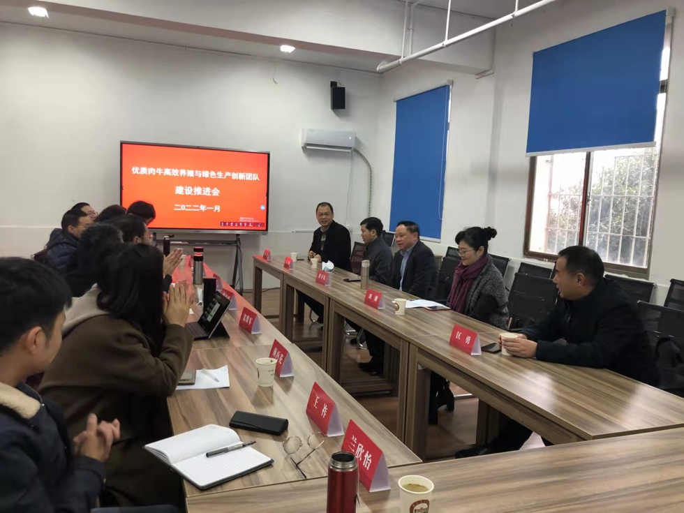 2022年1月20日,湖南省科技创新团队“优质肉牛高效养殖与绿色生产创新团队”建设推进会在学校召开。湖南省科学技术厅引智处刘湘调研员,304永利集团官网入口唐圣松副校长、科技处匡勇处长、人事处(人才办)伍小松处长(主任)、动科院贺喜院长,以及创新团队全体成员参加会议。