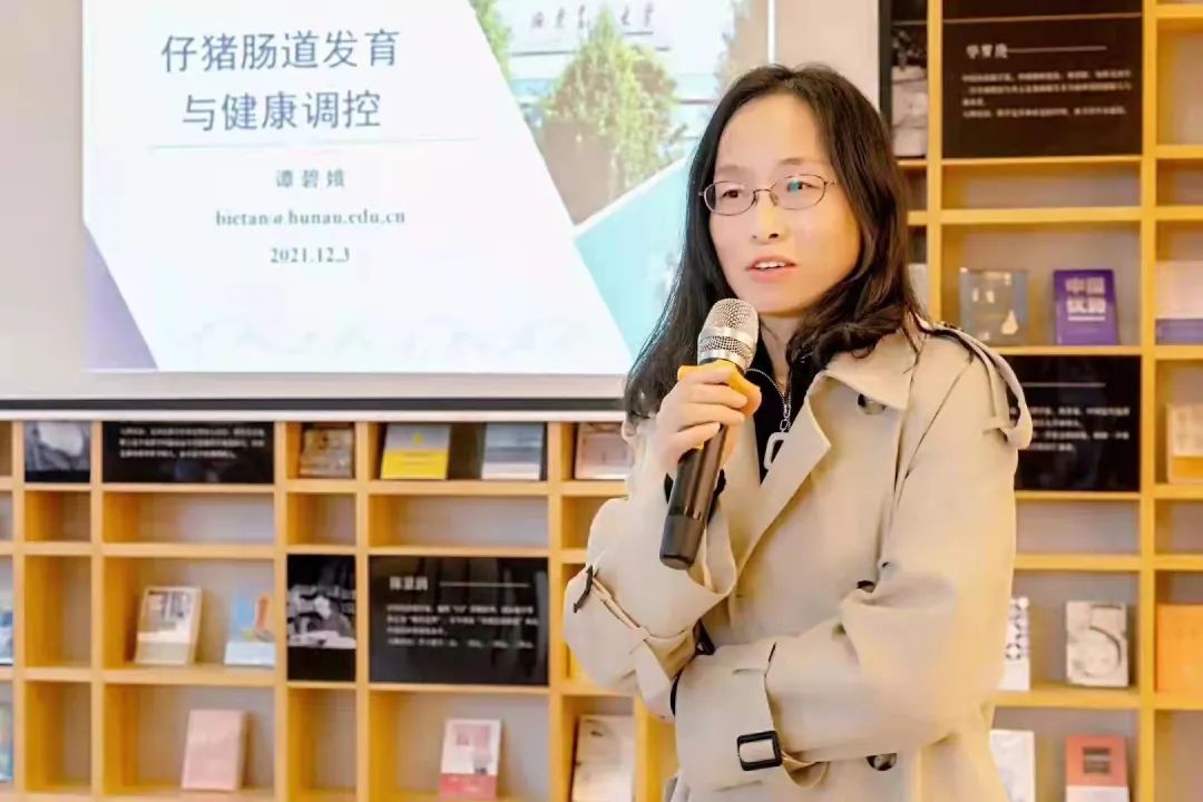谭碧娥主要从事猪营养研究。先后主持国家自然科学基金项目5项、国家重点研发计划课题1项等,近3年获科研经费2000多万元。围绕生猪营养代谢与健康调控开展研究,揭示了仔猪出生和断奶后肠道时空发育规律以及肠道结构功能与仔猪生长的关联,阐明了猪肠道营养感应利用与应激损伤修复的调控机制。成果对促进仔猪肠道健康、提高生产效率具有重要的科学意义,也可为婴幼儿肠道早期发育的营养调控以及胃肠疾病控制等研究提供参考。建立了仔猪肠道发育和健康的调控技术,开发了系列乳仔猪料,解决了长期以来困扰的仔猪断奶后腹泻、采食量低和生长阻滞的瓶颈问题。技术成果在饲料企业和养殖企业得到推广应用,对促进生猪健康养殖和产业转型升级有重要的贡献。