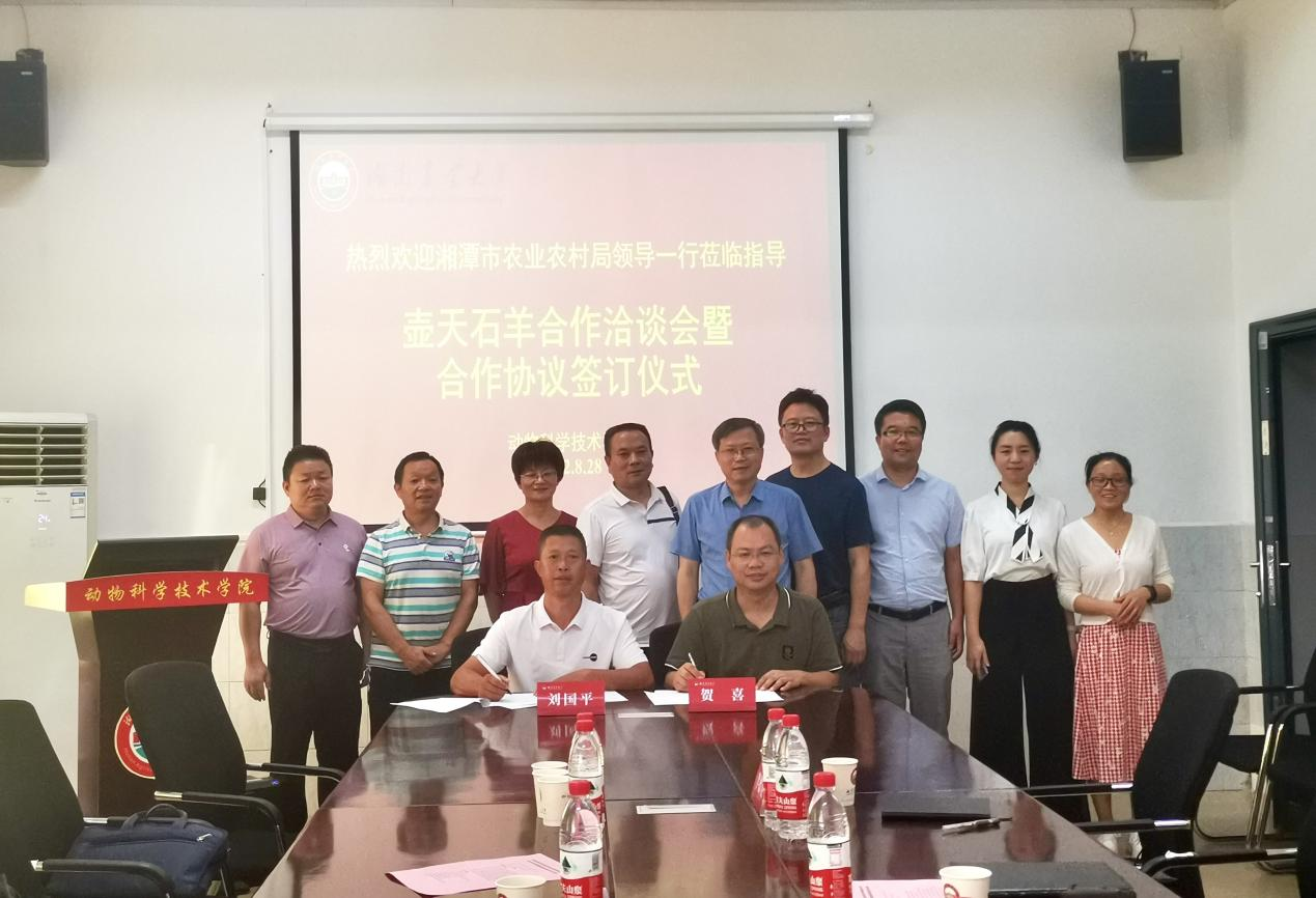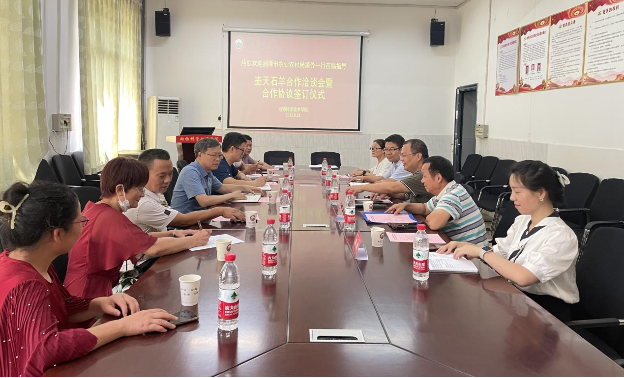 8月28日上午,304永利集团官网入口与湘乡市绿生宝生态农业发展有限公司就壶天石羊研究合作协议签约仪式在304永利集团官网入口221会议室隆重举行。签约仪式由永利官网院长贺喜主持,学校乡村振兴中心副主任、新农村发展研究院副院长胡泽友,湘潭市农业农村局二级调研员吴买生、种业管理科科长余雪阳,湘乡市农业农村局副局长周志华、原总工程师陈月华、畜牧水产事务中心主任李进,湘乡市绿生宝生态农业有限公司董事长刘国平、副总余党清,学院副院长李德亮以及郭焱芳、刘梅等老师参加签约仪式。