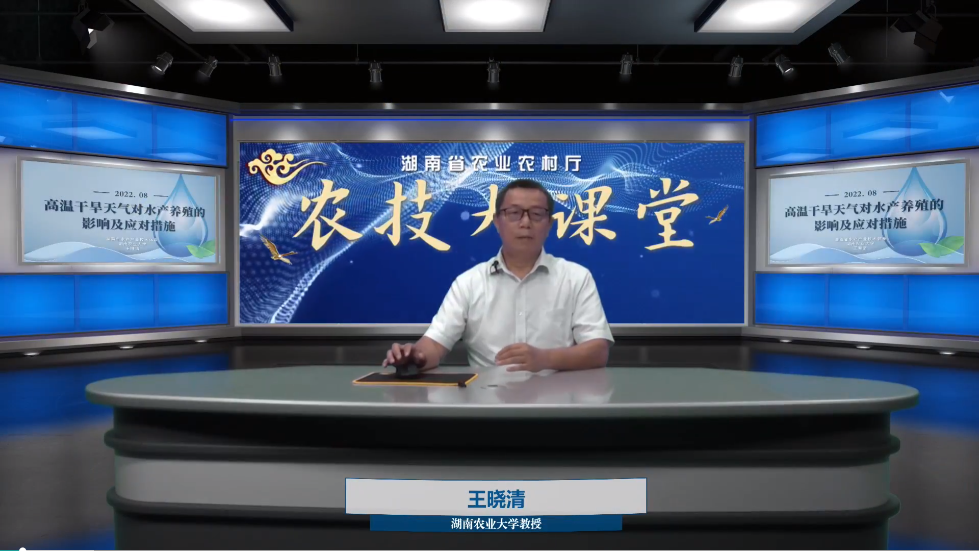 专家团成员王晓清教授以《高温干旱天气对水产养殖的影响及应对措施》为题,从持续高温天气对水产养殖的影响和应对高温天气水产养殖减灾措施2方面进行详细解读,提出及时掌握旱情,科学调度养殖用水,加强生产管理、水质调节、疫情防控、日常管理、做好产销对接的7个应对措施。