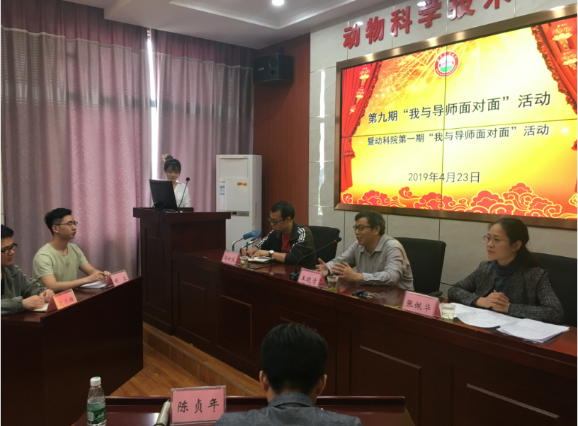 2019年4月23日下午,由304永利集团官网入口研究生院、研究生工作部主办,304永利集团官网入口承办的304永利集团官网入口第九期“我与导师面对面”活动暨动科院第一期“我与导师面对面”活动于二教501室举行,本次活动王晓清教授、郭松长副教授、张佩华副教授作为导师代表出席。“我与导师面对面”的召开有利于加强永利官网导师对研究生的思想引导,学习指导、心理疏导和就业辅导的积极作用;促进永利官网研究生与学校、导师及同学之间的沟通与交流,增进师生之间的情感链接;建立导师与研究生的交互平台,切实解决研究生在学习生活中遇到的问题;打造亦师亦友的和谐学术氛围,提高永利官网研究生的科研热情。动科院研究生各年级代表参加了此次活动。
