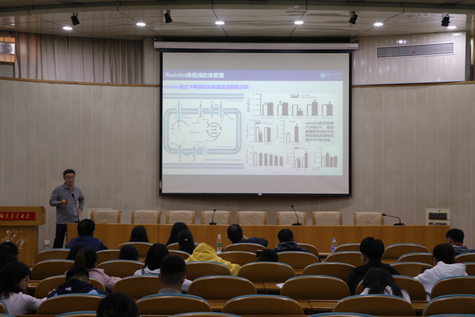 11月7号下午,304永利集团官网入口于生科楼二楼学术报告厅召开了主题为“脂肪代谢调控初探”的学术报告,此次报告的主讲人是来自广西大学的周磊教授,动科院全体研究生参与本次报告。