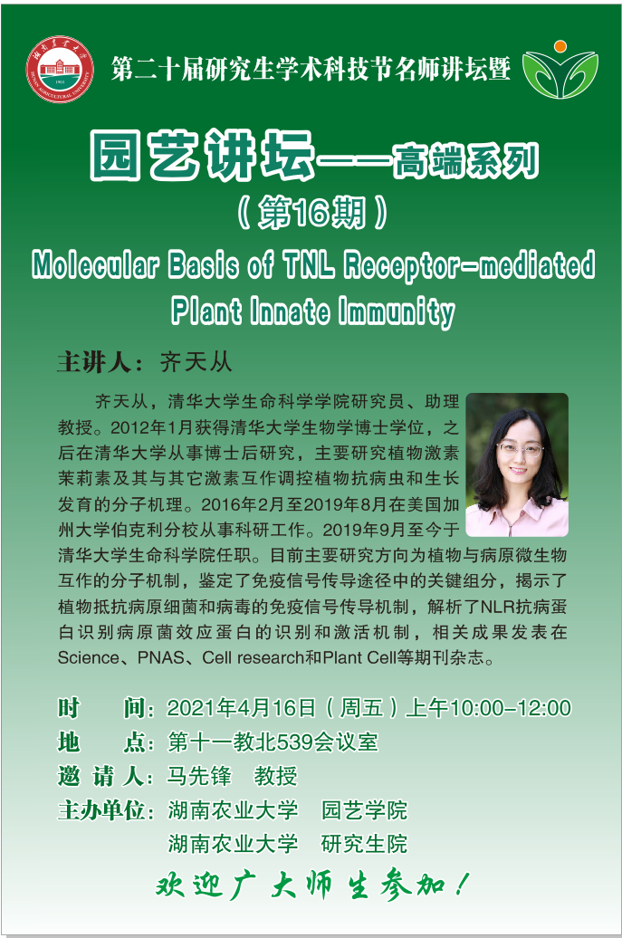 “园艺讲坛”高端系列:Molecular Basis of TNL Receptor-mediated Plant Innate Immunity