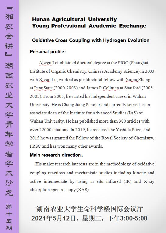 304永利集团官网入口青年学者学术沙龙第十五期--Oxidative Cross Coupling with Hydrogen Evolution