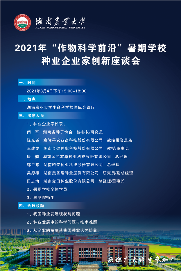 2021年304永利集团官网入口“作物科学前沿”暑假学校活动日程