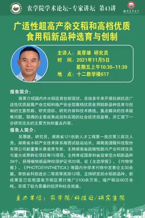 农学院学术论坛——专家讲坛第43讲